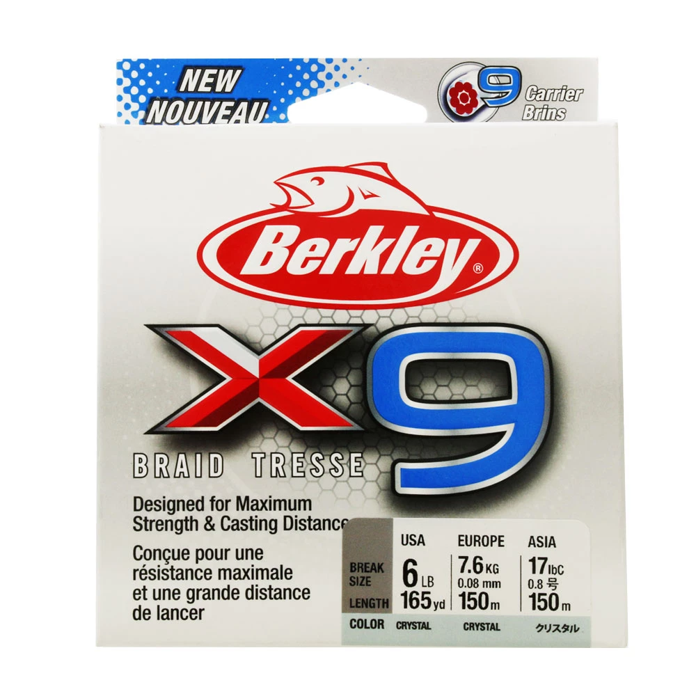 Utilising the latest 9-carrier technology, the Berkley X9 Braid Crystal offers an extremely smooth and strong line, designed for optimal strength and casting distance. Featuring a 9-carrier construction with a PE core, the Berkley X9 Braid Crystal has an extremely round profile, allowing it to smoothly flow through guides for increased casting distance. Its high-strand construction also enhances wear resistance for fishing over rugged structure, and provides higher knot strength. This is durable, strong braid!